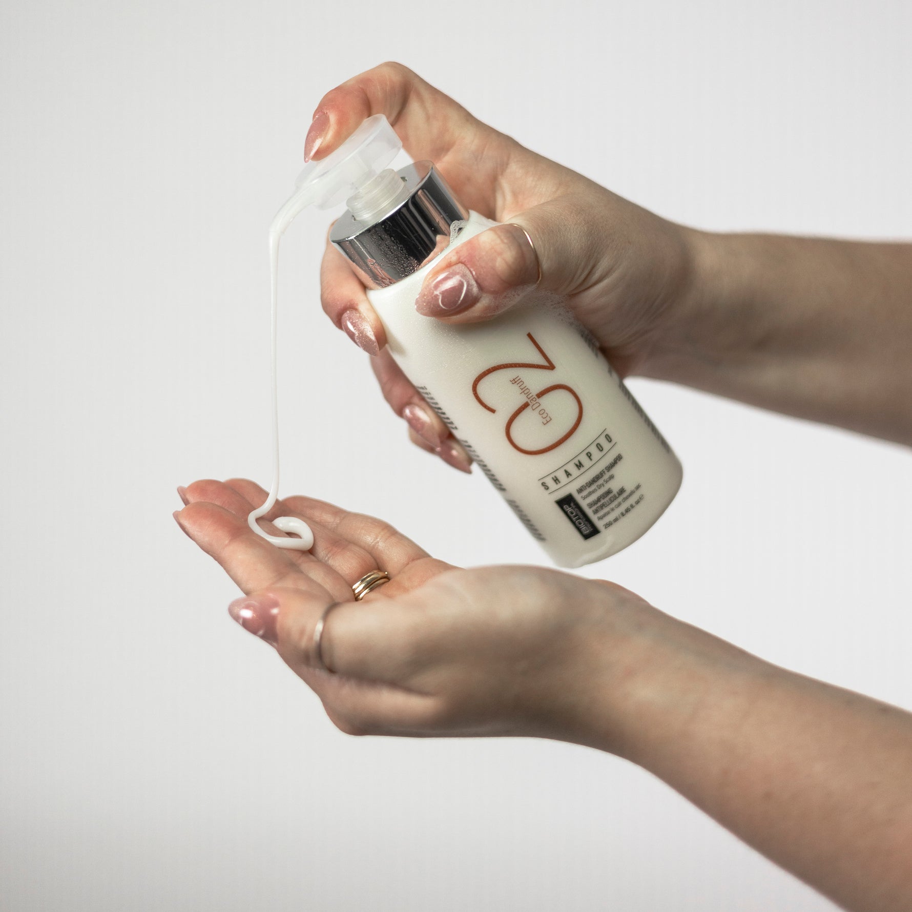 Unit price per02 Eco Dandruff Shampoo is enriched with Chamomile extract, Provitamin B5, and Macadamia seed oil to hydrate, nourish, and soothe both hair and scalp. It also contains Piroctone Olamine and Salicylic Acid, which target the root causes of dandruff, helping to treat it effectively and reduce hair shedding.