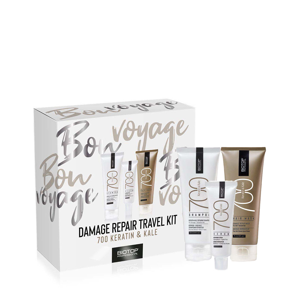 Kit de viaje para reparar daños en el cabello con queratina y kale de 700 unidades